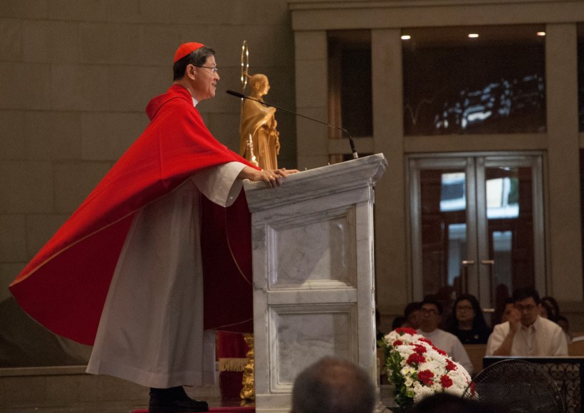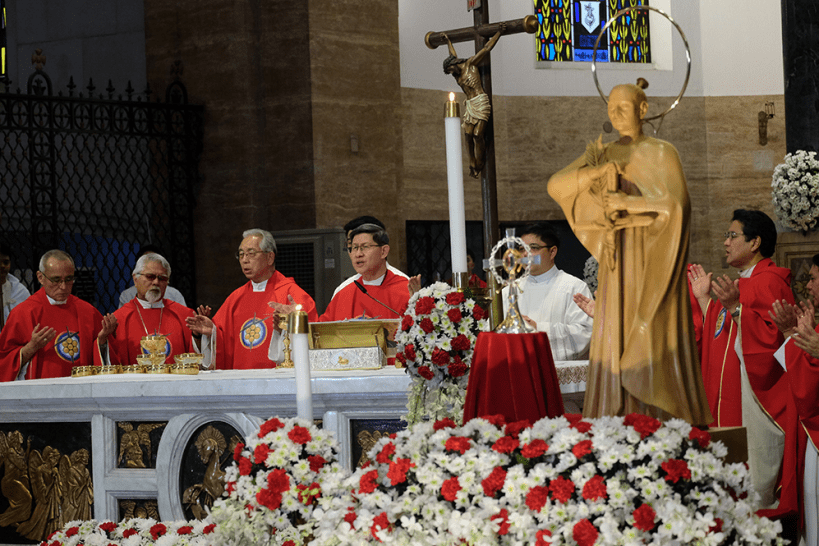 ►The Thanksgiving Mass to mark Blessed Takayama’s first Feastday was concelebrated at the Manila Cathedral Basilica, where Ukon Takayama and his exiled family had worshipped in 1614-1615. Manila Archbishop Luis Antonio Cardinal Tagle was the lead celebrant – with three Archbishops, four Japanese Bishops and 25 Priests concelebrating.