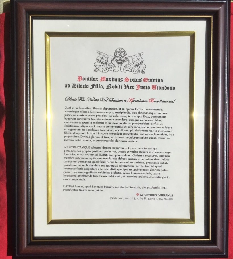 ● April 24, 1590 — Apostolic “Breve” of Pope Sixtus V (r. 1585-150) sent to Ukon, who was stripped of his feudal domain in Akashi Prefecture for refusing to abjure his Christian faith;