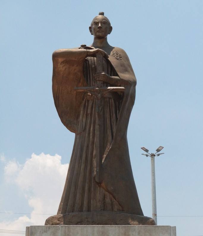 ►Lord Justo Ukon Takayama (1552 Osaka-1615 Manila; beatified Feb. 7, 2017) came to the attention of post-war Philippines when a bronze statue of him was installed in 1977 as the centerpiece of the Philippines-Japan Friendship Park at Plaza Dilao, in Paco District — a Japantown reserved for Japanese expatriates since 1764 — though its original site in 1592 was the Manila City Hall area — within cannon range of the Muralla. Ukon, known in Manila as Dom Justo Ucondono, was deported to the Philippines for refusing to abjure his Catholic faith. Proposed as a Catholic saint in 1630, he was celebrated as “the epitome of the Japanese spirit.”